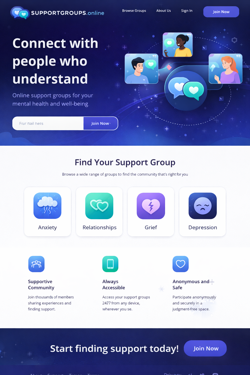 SupportGroups.online connects you with small, facilitator-led groups across mental health, grief, chronic illness, relationships, spirituality, and more—so you never have to carry it alone.